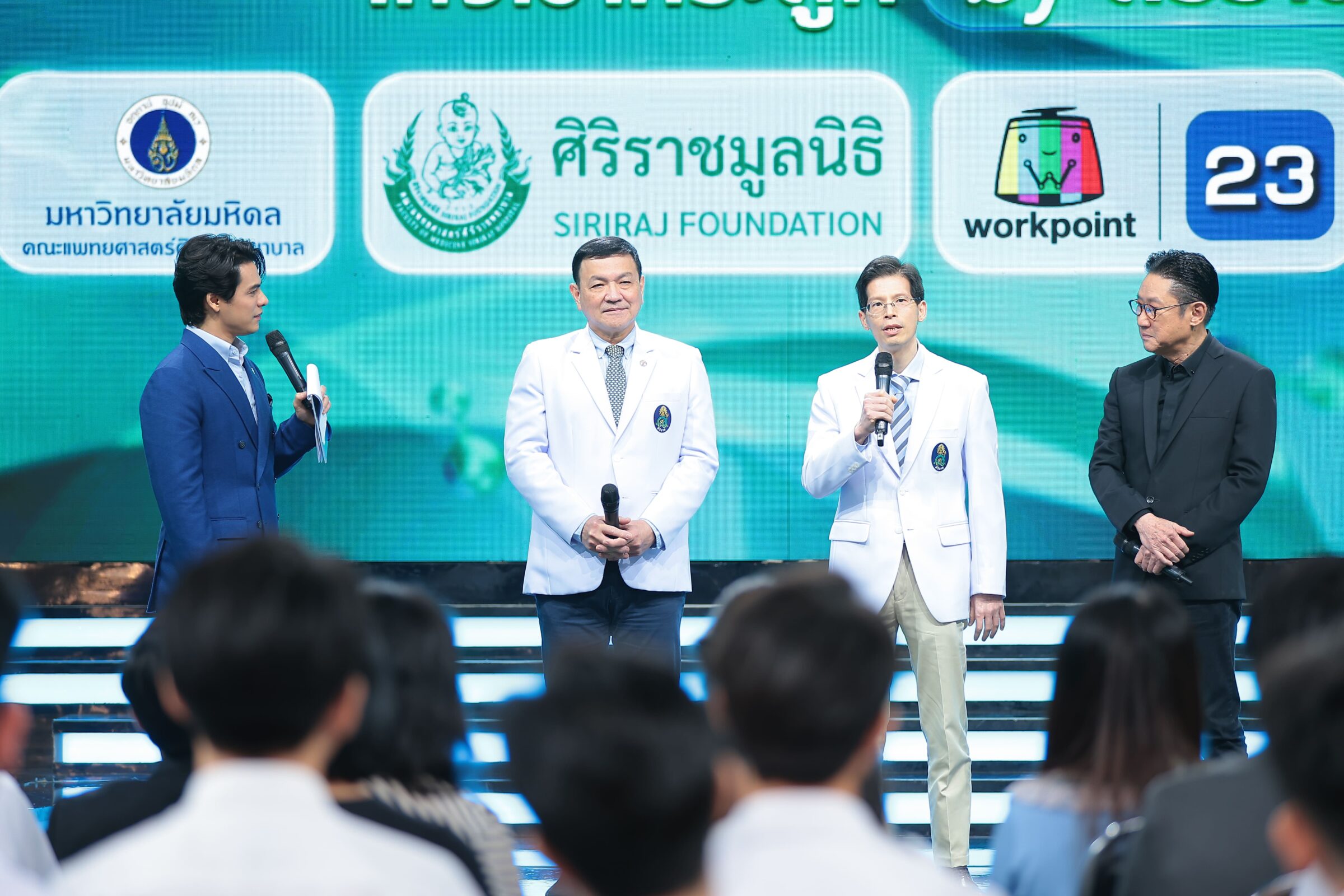 เมื่อวันที่ 24 สิงหาคมที่ผ่านมา โดยมี ศ.นพ.กีรติ เจริญชลวานิช หัวหน้าภาควิชาศัลยศาสตร์ออร์โธปิดิคส์และกายภาพบำบัดคณะแพทยศาสตร์ ศิริราชพยาบาล มหาวิทยาลัยมหิดล, รศ.นพ.พัชรพล อุดมเกียรติ รองหัวหน้าภาควิชาฯ ฝ่ายทรัพย์สินและพัสดุ, ผู้ช่วยอาจารย์คลินิก นพ.พสธร สุวรรณผ่องใส พร้อมด้วย คุณปัญญา นิรันดร์กุล ประธานบริษัท เวิร์คพอยท์ เอ็นเทอร์เทนเมนท์ จำกัด (มหาชน) และผู้บริหาร บริษัท เวิร์คพอยท์ เอ็นเทอร์เทนเมนท์ จำกัด (มหาชน) ดร.วิชนี ศรีสวัสดิ์ ประธานเจ้าหน้าที่บริหารสายงานการตลาด และคุณธนศักดิ์ หุ่นอารักษ์ ประธานเจ้าหน้าที่บริหารสายพัฒนาธุรกิจ   นอกจากนั้นยังมี นิสิตนักศึกษาแพทย์ จาก 19 สถาบันแพทย์ชั้นนำของประเทศ ร่วมงานแถลงข่าวเปิดตัวรายการ ณ สตูดิโอเวิร์คพอยท์ ปทุมธานี